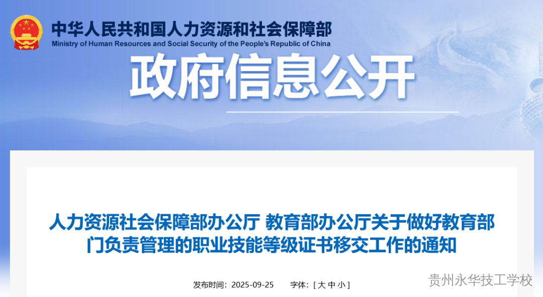 近日,人社部、教育部联合发布《关于做好教育部门负责管理的职业技能等级证书移交工作的通知》,通知提到:“教育部于2025年12月31日前,将300个职业教育培训评价组织名单、447个“X证书”目录清单、证书标准移交人力资源社会保障部。”